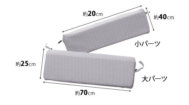 サイズ/大パーツ:約70×25cm、小パーツ:約70×20cm、パーツ2点結合時:約70×40cm
