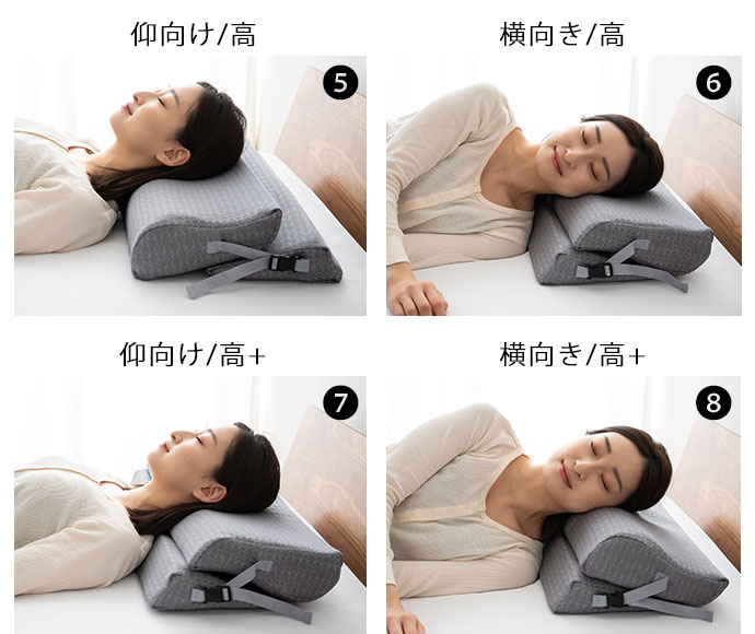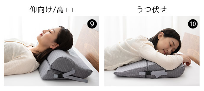 2つの枕を組み合わせることで10通りの眠り方を実現